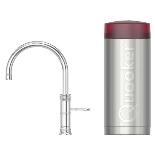 De Quooker Classic Fusion combineert een klassiek design met moderne functionaliteit, waardoor het een tijdloze aanvulling is voor elke keuken. Deze alles-in-één kraan levert direct kokend, warm en koud water, en kan, in combinatie met de Quooker CUBE, ook gekoeld en bruisend water bieden. Verkrijgbaar in de modellen Round en Square, met afwerkingen in chroom, roestvrij staal, nikkel glans en messing patina, past de Classic Fusion perfect bij diverse keukenstijlen. Dankzij het doordachte ontwerp en de hoogwaardige materialen is deze kraan niet alleen praktisch, maar ook een stijlvolle blikvanger in uw keuken.